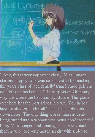 I think the first one was the best, though... You've done something akin to number four before (I believe, or I've just seen more than one similar lately), and the second I didn't really get (other than there being an irate guy-turned-girl who was probably stuck that way (which I saw no cause or explanation for)).
